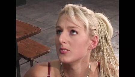 Big juicy ass mommy masturbates her wet creamy shaved pussy with a dildo on the table close-up.