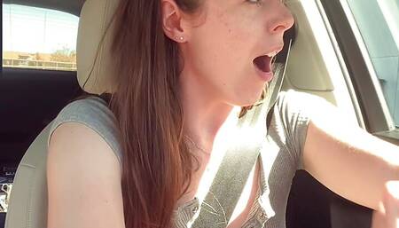 Trying not to cum too loud in the Starbucks Drive Thru!