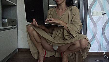 Posted on August 14, 2023open leg work mp While working on a laptop, it became hot in my dress to get out of this situation, i better spread my beautiful legs