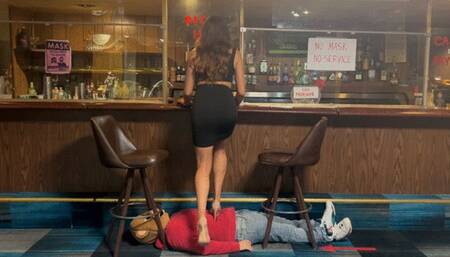 Posted on March 2, 2023Mistress Giselle Night Out at bar BallBusters The sexy and beyond beautiful goddess giselle, hits up her favorite bar ballbusters. goddess giselle is wearing a cute black dress with some clear toe spikes high heel shoes that makes any men drool to her feet. the bear rug feels the sharpness of her heels as he feels like a pin cushion as each step she takes brings a new level of pain that he wasn’t prepare for the night. luckily for him goddess giselle does sit down but only to stretch her legs and rest only her heels onto his chest giving him some marks for him to remember her by. goddess giselle invited some friends to come as the bear rug can barely handle her, he might not be able to survive a girl’s night with goddess giselle and her friends at bar ballbusters.