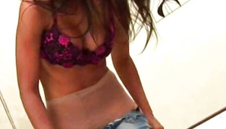 Sexy Big Tit Brunette Showing Bald Pussy Thru Her Pantyhose